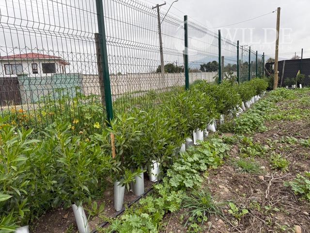 cierres laterales y fondo en reja ACMAFOR., con plantacion de cerco verde interior de MIOSPOROS y riego tecnificado.